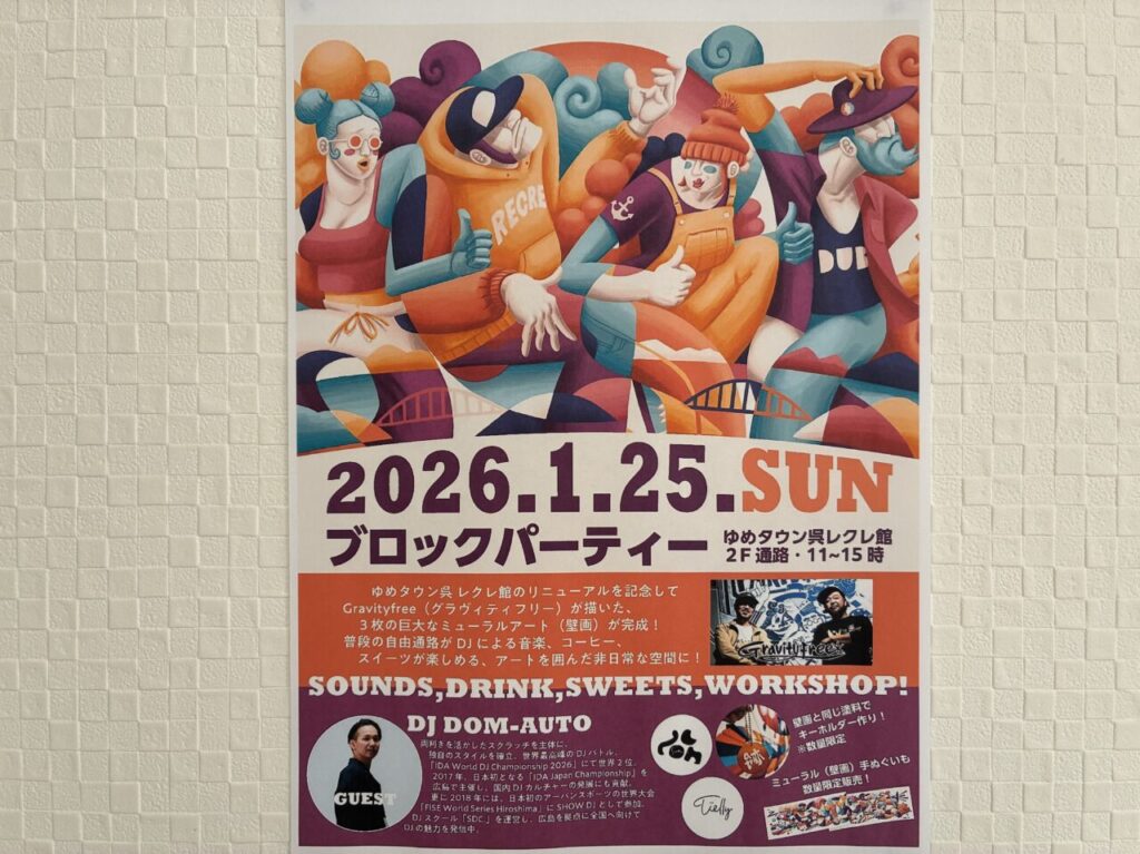 外にはお酒のポスターやイラストと一緒にたくさんの子ども服があります。