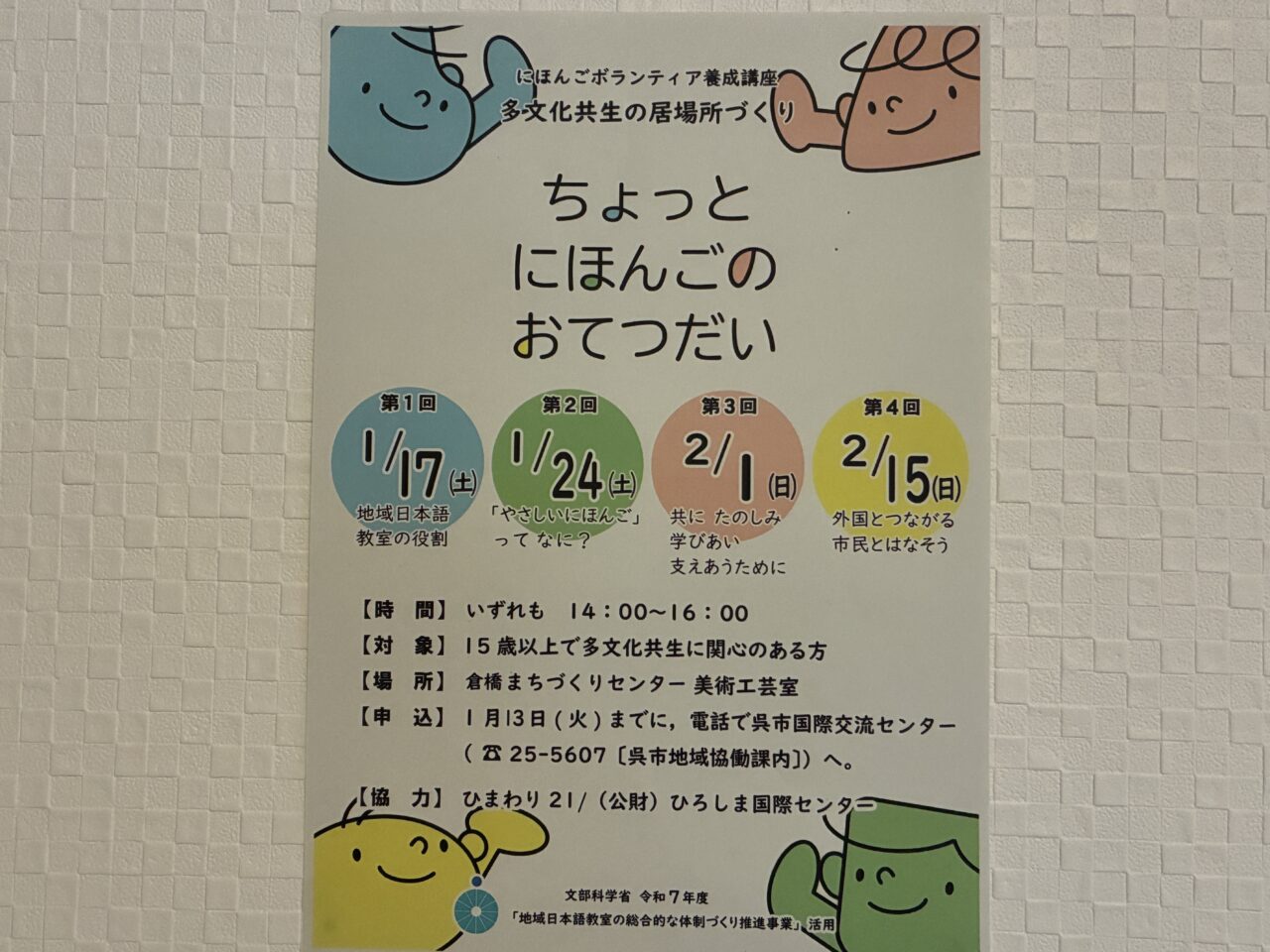 【呉市】にほんごボランティア養成講座「ちょっとにほんごのおてつだい」の参加者を募集中です!