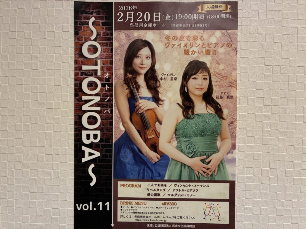 【呉市】冬の夜に音楽を楽しもう♪2月20日「~OTONOBA~vol.11」が開催されます♪
